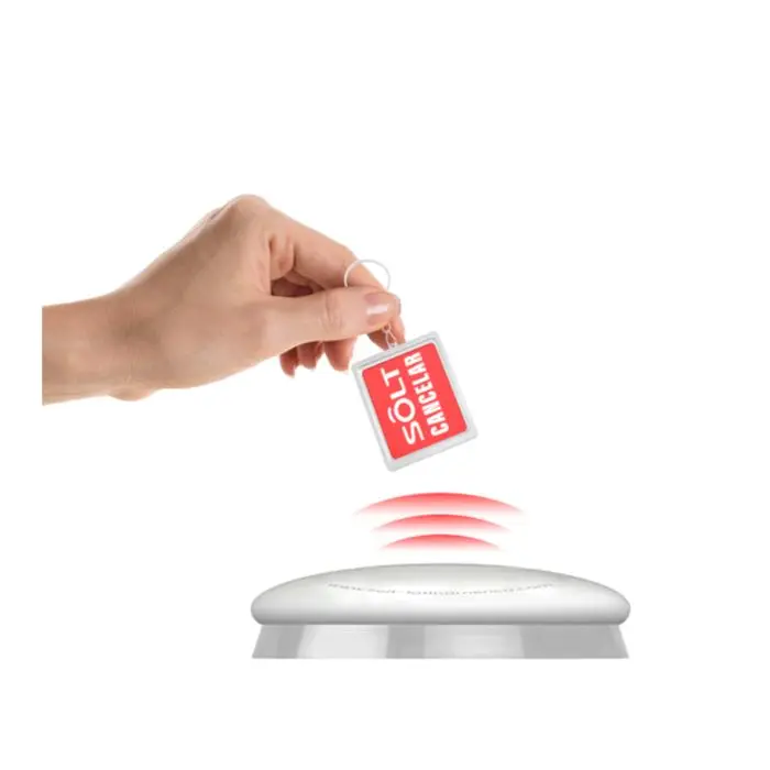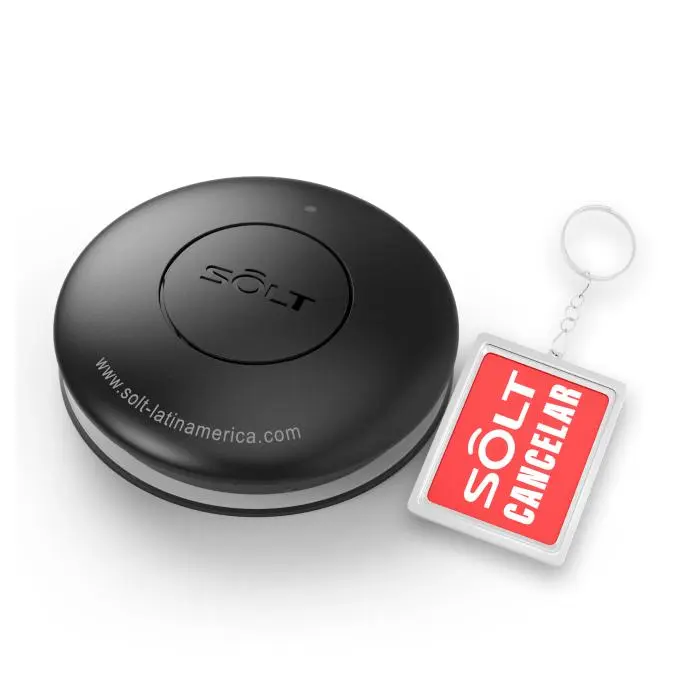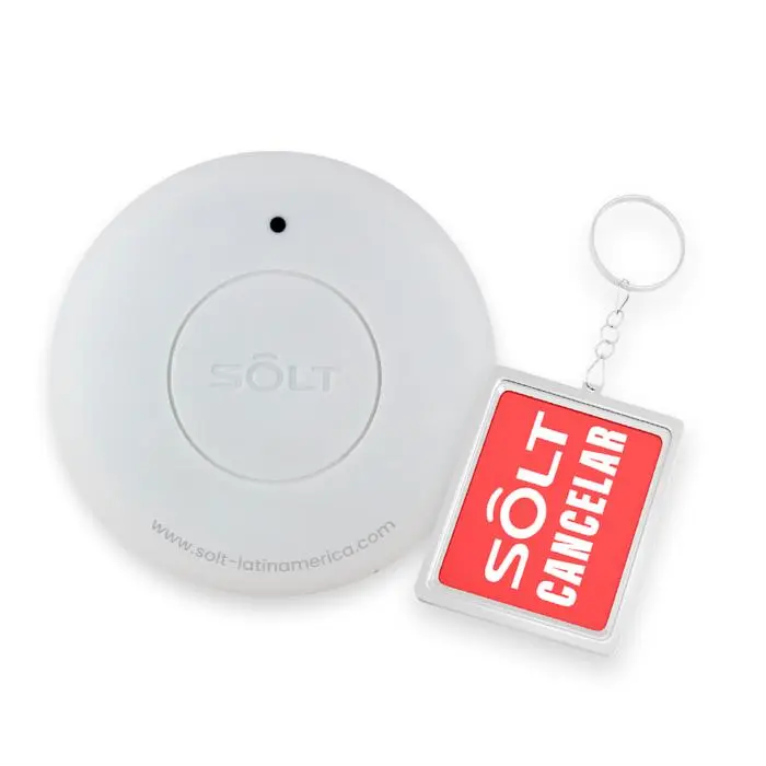 Botón de llamado inalámbrico de 2 funciones: LLAMADO y CANCELACIÓN magnética, cuando se genera un llamado desde el botón, este únicamente se cancelara o reiniciara cuando el integrante del staff asociado al dispositivo se acerque al mismo con el accesorio magnético, esto quiere decir que la llamada permanecerá activa hasta que el personal de servicio llegue al punto desde donde se genero el llamado.