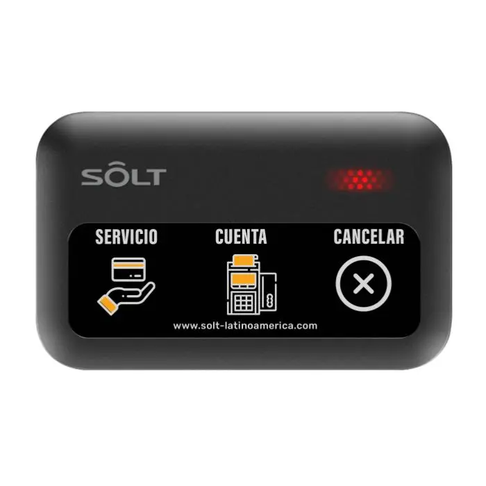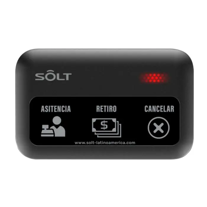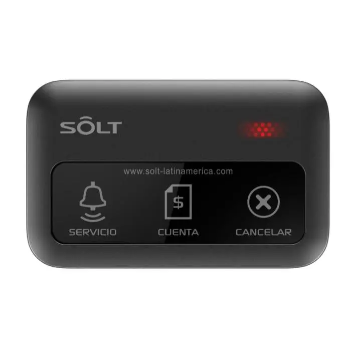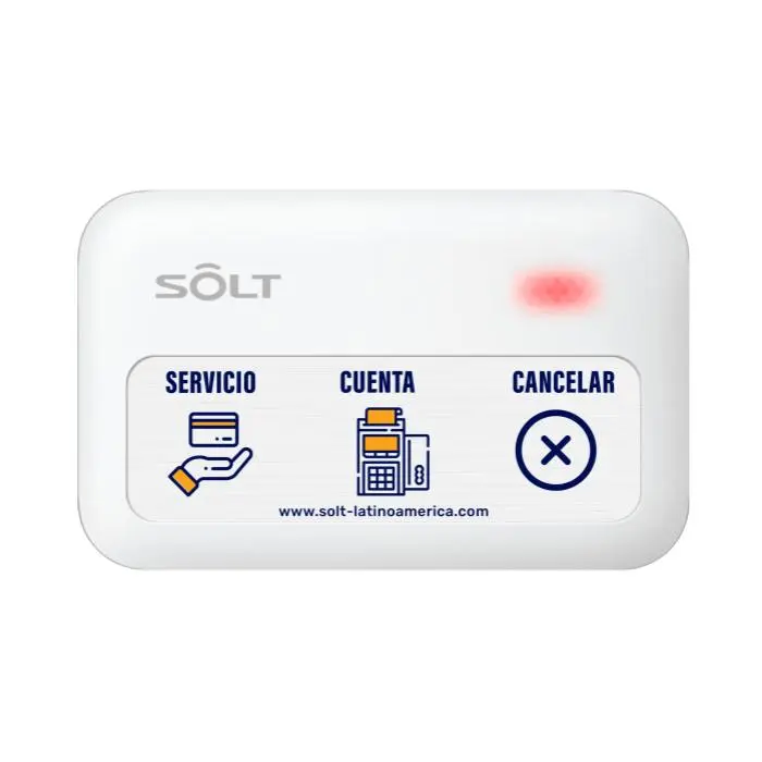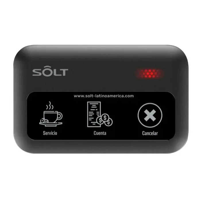 - Nuestros botones multifunción de la serie SB9 están equipados con 3 teclas de función asignada, la primera tecla permite solicitar servicio al camarero asignado, con la segunda tecla el cliente puede solicitar la cuenta y la tercera tecla es para cancelación de llamados y toma de tiempo de respuesta.